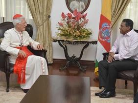 Le Cardinal Maurice Piat et le président Danny Faure ont surtout discuté des moyens pour assurer le bien-être et l’épanouissement des institutions telles la société et la famille.