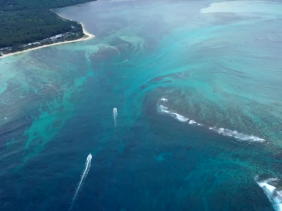 Nombreux sont ceux qui sont tombés sur cette image montrant une chute d'eau sous-marine au large du Morne. Récemment, Snopes, un site web anglophone spécialisé dans la vérification des faits, a publié un article sur ce paysage naturel spectaculaire. Dans cet article, l'auteur souligne avec des preuves à l'appui que cette chute d'eau n'est en réalité qu'une illusion d'optique causée par un dégradé de couleurs des fonds marins. Selon Vassen Kauppaymuthoo, ingénieur en environnement et océanographe, cet endroit connu sous le nom de « la passe Hollandaise » fait partie de la zone tampon du Morne, qui est classée patrimoine mondial de l'UNESCO.